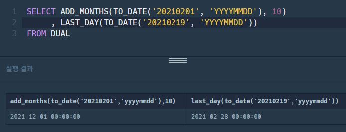 ADD_MONTHS(‘d1’, n): d1에 n을 더한 값을 출력한다.