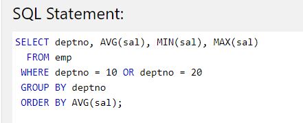 - 만약 SELECT 절에 사용되어진 Column이 GROUP BY 절에 묶이지 않거나, 그 자체로 Aggregate function이 아니라면 오라클은 에러(ORA-00937)를 출력